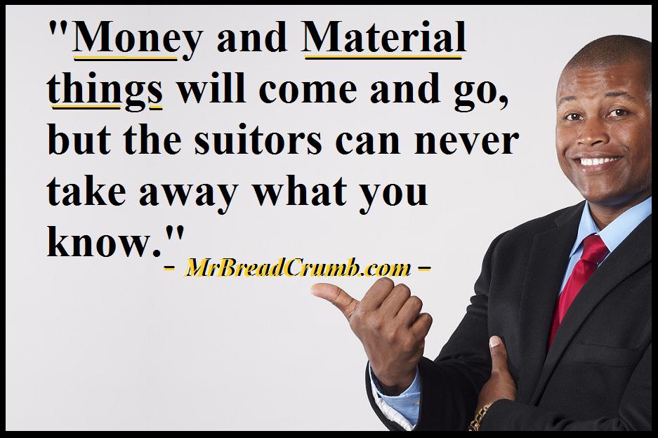 Money and Material Things will come and go, but the suitors can never take away what you know. So, if this is true, then the best investment you can ever make is an investment in your own knowledge.